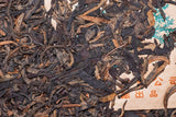 This tea is full of vitality and can be enjoyed immediately or with further aging for better results. The tea cake reveals rich golden yellow young tea buds and smells of flowers, camphor and smoke. The tea taste is complex and rich in layers. The tea soup has turned into a clear chestnut red. In the beginning, there is a refreshing floral fragrance. Then early infusions have a strong fragrance of camphor, wood and smoke: long-lasting aroma and robust sweetness in later infusions. Spent leaves are soft and thin, pig liver coloured and multi-stalked. Tea leaves of grade 4 to 6.