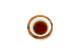 The tea liquor is chestnut red, with a smooth, herbaceous, and aged tea flavour.