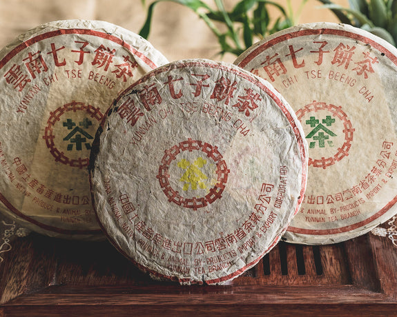 Flavour: First few infusions have a rich, smooth aged tea impression, slight sesame flavour, stimulating. Follow with more obvious traditional betel nut and sesame flavour accompany with comfortable cha qi. Last few infusions are long-lasting and have a very stable aged tea taste. Infused tea leaves are thick grade 7 dark colour leaves. slightly rigid, with a small number of branches. Post-fermentation our professional warehouse in Hong Kong since 1985.